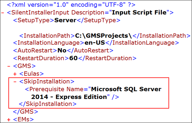 - The GMS Platform.xml file is verified and enabled with the extension modified from .txt to .xml and available at the path ...\InstallFiles\Instructions containing the same Setup type as that of the existing installation.
