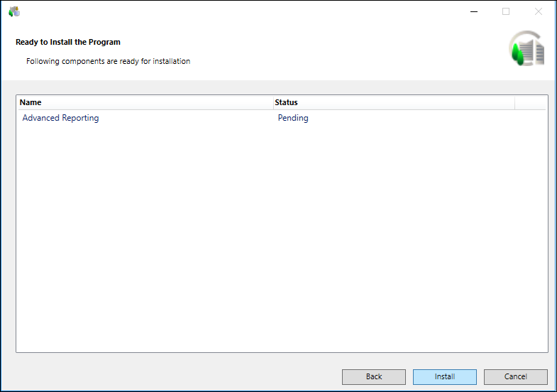- Click Next until the Ready to Install the Program dialog box displays. It lists the prerequisite name that you are installing or updating.