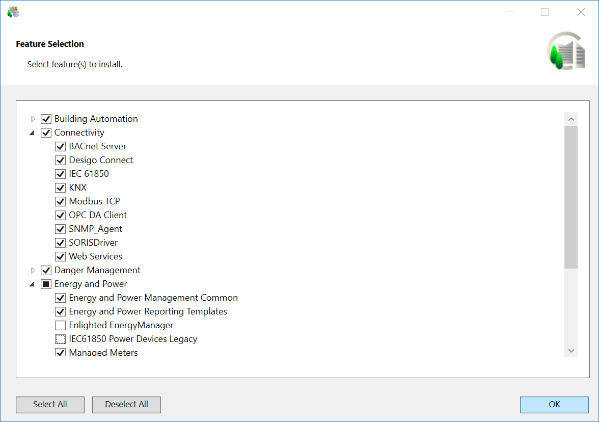 - Accept the default language selection. The installation language of the OS is the default language if the language pack is available; otherwise, en-US is used. The Welcome to the Desigo CC Install Wizard dialog box and all related messages on this dialog box, however, always display in en-US.