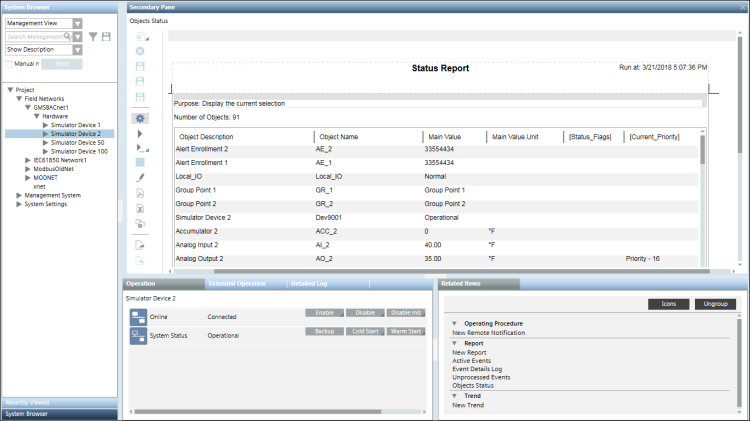 The selected report displays in the Secondary pane in Run mode. The selected object is set as the name filter for the tables and plots present in the report. If the selected report in the Related Items tab is a related report for the selected System Browser object, then data is retrieved according to the name filters set for report elements. However, if the selected report in the Related Items tab is a Show in Related Items report, the name filter configured for all the reporting elements in the generated report is replaced by the path of the selected object in System Browser After running a report definition, should you decide to change some definition parameters, click Edit to toggle from Run mode to Edit mode in order to make your configuration changes.