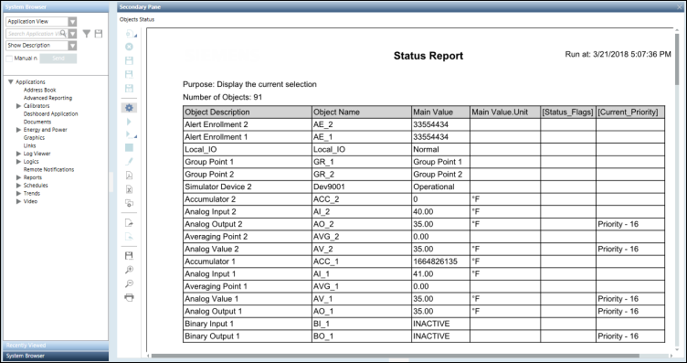 The report execution status displays in the Report Management section. On successful report execution, the generated report displays information related to the selected object.