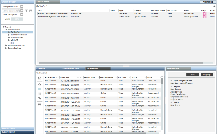 (An object from any application that supports secondary selection such as Graphics, Trends, Textual Viewer, Reports, or Schedules) The latest 100 Activities and Event Log records for the object display in the Detailed Log tab.
