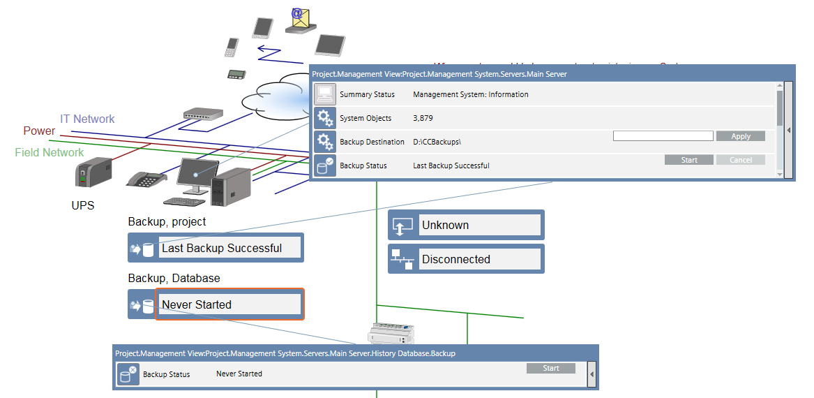 - Right-click the Backup Database symbol and select Show Status and Commands.