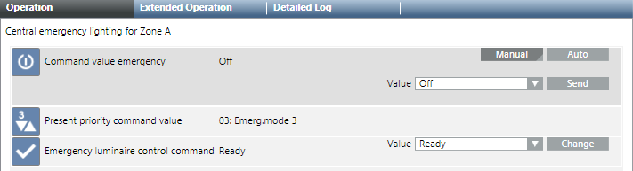 - In the Operation tab, select the Emergency Lighting Control Command property.
