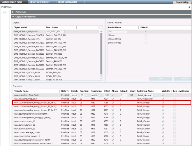 EnergyAndPower_Device_Modbus_HQ_2: This library lists the Object Models associated with the Sentron and Sicam devices.