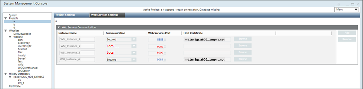 Modify the default ports under Web Services Port, for the Secured (8443) or Local (8080) Communication type to change the default values. NOTE: For every WSI instance, enter a unique port number.