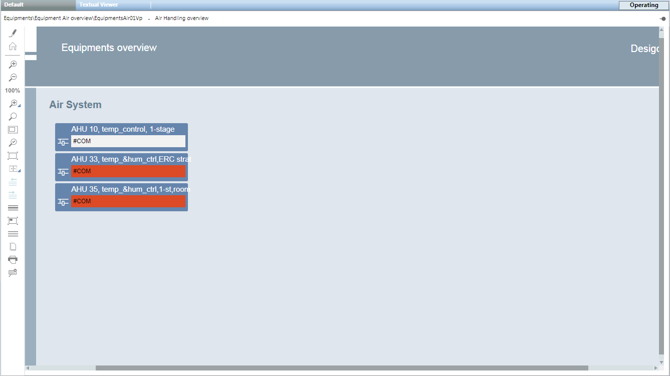 These Graphic Templates do not require engineering. They are automatically recognized and displayed by Desigo CC when selecting the object data in System Browser. The Desigo building automation and control function name forms the basis for automatic recognition.