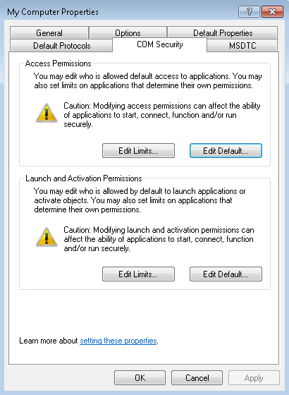 - In the My Computer Properties dialog box, click the COM Security tab.