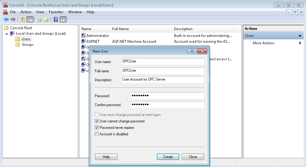 a. In the User name field, enter a name for the user (for example, OPCUser).