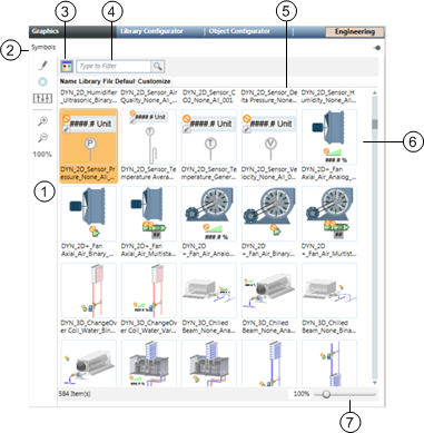 4 | Search Filter | Allows you to search the Symbol and Graphic Templates libraries and limit the objects displayed. |