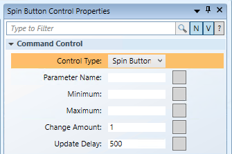 - In the Update Delay field, leave the default value of 500 (milliseconds). This field displays the time, in milliseconds, that it will take to update the value from the last click the Spin button command control.