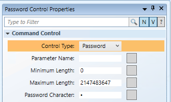 - From the Property View (Command Control Properties), expand the Command Control properties, and from the Control Type drop-down menu, select Password.