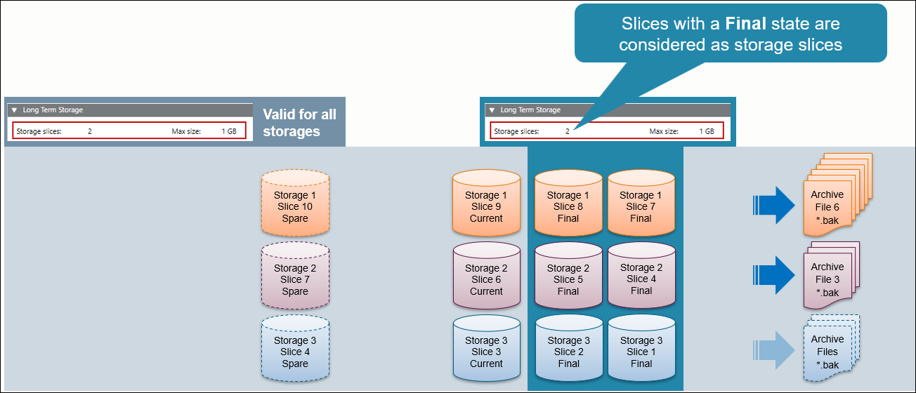 7 | Only a defined number of final LTS slices remain available, with the oldest final LTS slice being deleted. The backups remain. |