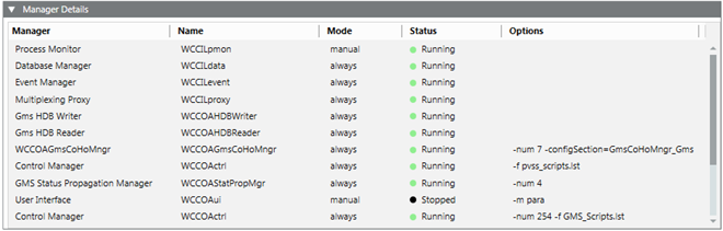 Before starting the Installed Client or Web/Windows App Client, it is recommended to wait until all the managers of a project except for the managers with manual mode (excluding the process monitor manager), are running. A manager in red with a project status stopped – inconsistent progs file (in red) indicates that the progs file is corrupt. Check the Smc.log file located at
