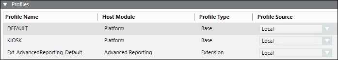 The Profiles expander lists all the profiles for the originator project including profiles for its extensions. It also displays the profiles for all the linked distribution partner project (including profiles for the configured extensions), if any.