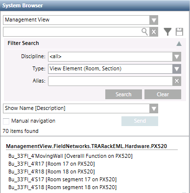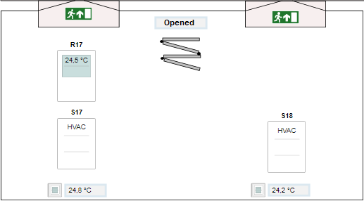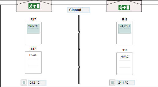 NOTE: Do not use the Logical View for a moving wall, since the hierarchy structure is adapted dynamically in the System Browser based on the room configuration (hidden or displayed). As a result, the object Room no longer exists in Room 18 and an engineering error message is displayed on the graphic.