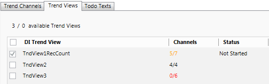 Select one or more Trend Views and select the check box to the left, next to DI Trend View. NOTE: Tooltip displays the assignments.