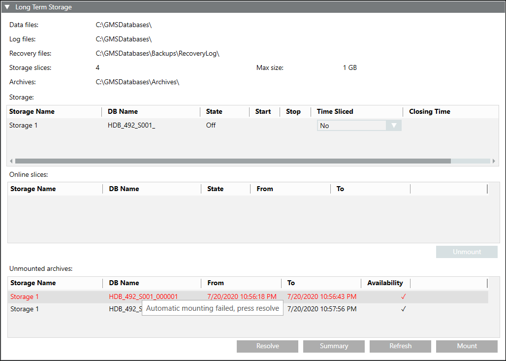 Scenario: You want to create a new Long Term Storage after the end of the set time slice interval (for example, one year) or when the previous storage is full.