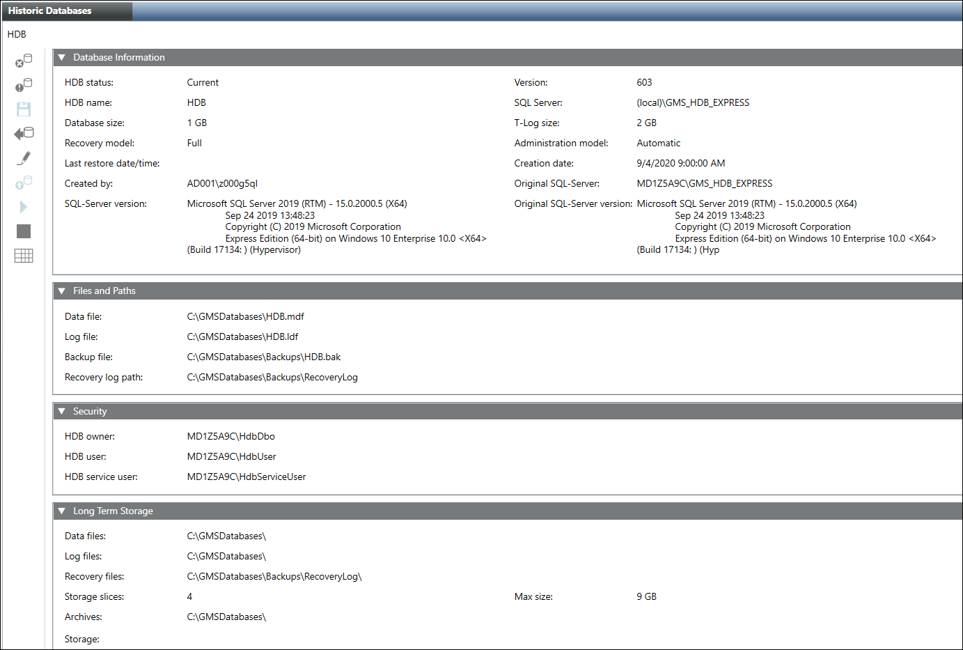 - The History Database is created and displays in the SMC tree. This may take a few minutes depending on the selected database size. When you create a new HDB it gets automatically linked to the SQL Server. However, if the History Database creation fails due to mismatch in the localization settings, see troubleshooting.