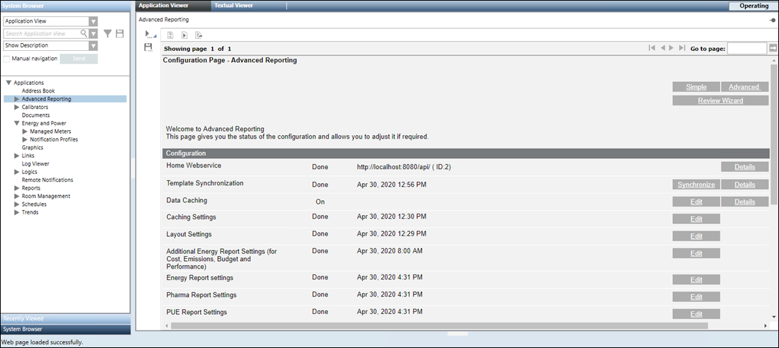 Template Synchronization | Date and time when the report templates were transferred to the Tomcat server. (see Synchronize Advanced Reporting Templates in Installing and Configuring Advanced Reporting.) |