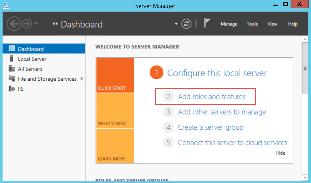 - On the Windows desktop, click Server Manager in the Windows taskbar.