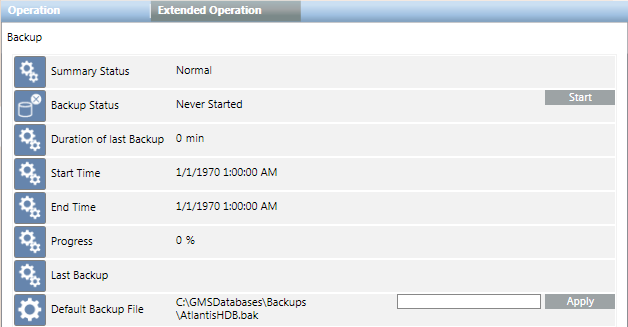 - Select Project > Management System > Servers > Main Server > History Database > Backup.