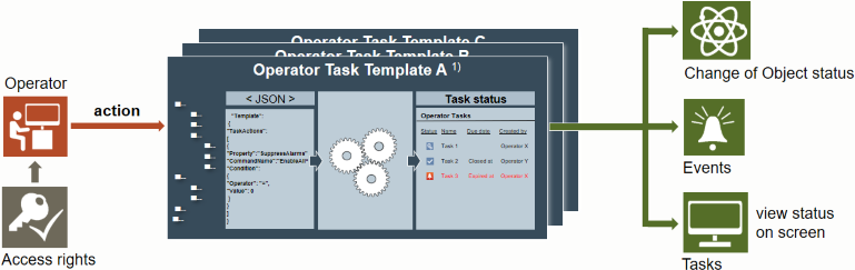 This section provides reference and background information for configuring the Operator Tasks extension module, which extends the core functionality of Desigo CC by adding the capability to configure tasks templates and create and manage operator tasks. For a guide to the integration procedure, see the engineering step-by-step section. For operator instructions, see the operating step-by-step section.