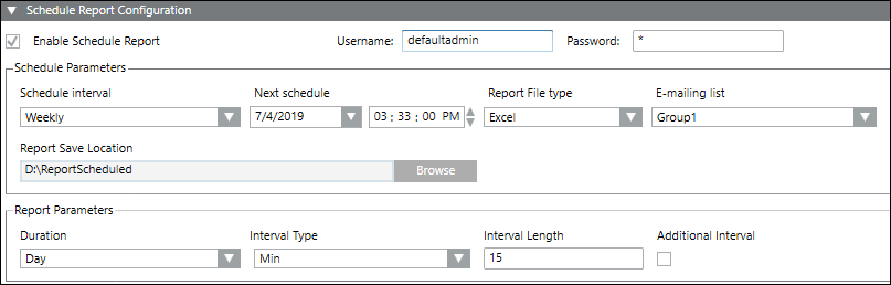 - Select the Enable Schedule Report check box to activate the report scheduling configurations.
