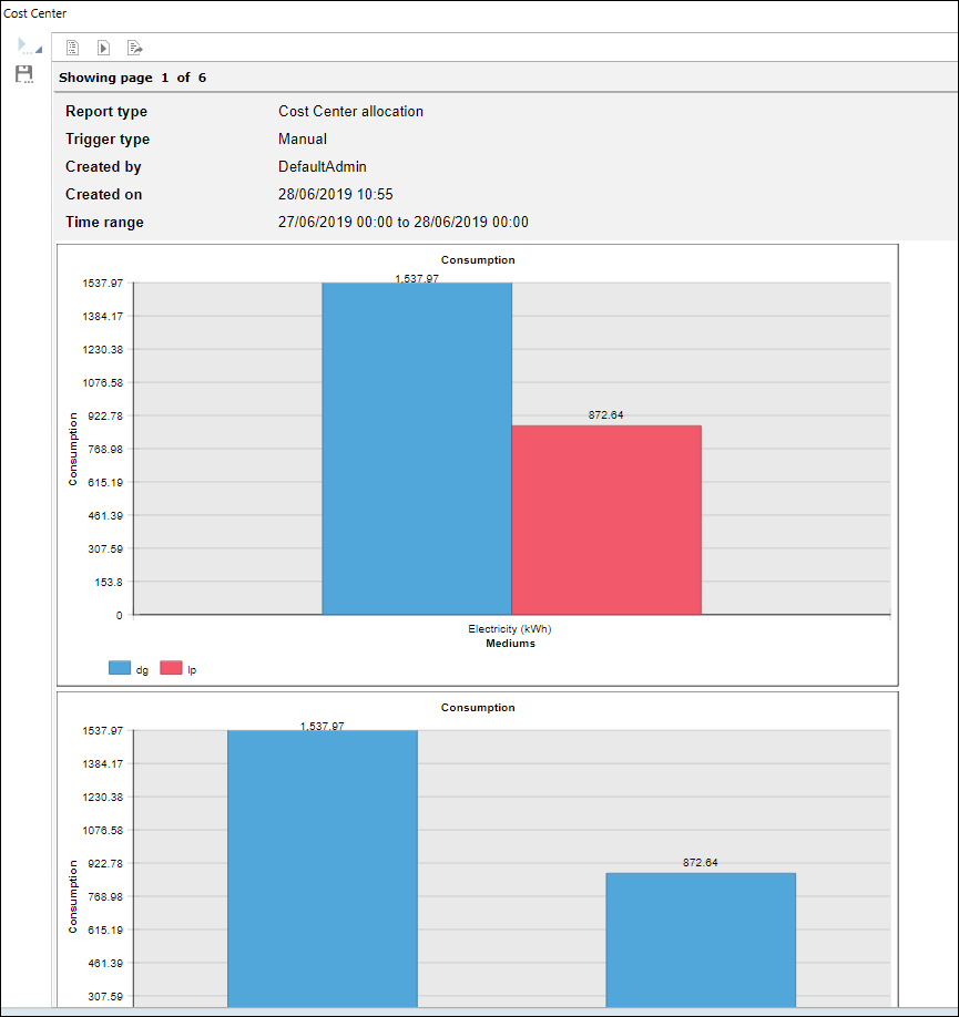 This report calculates the total energy consumption and costs for different mediums associated with each cost center. The report can be used for internal cost allocation.