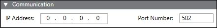 IP Address: Specify the IP address of the device for communication. When communicating via a gateway, use the IP address of the higher level. When communicating via Modbus TCP, use the IP address of the device.