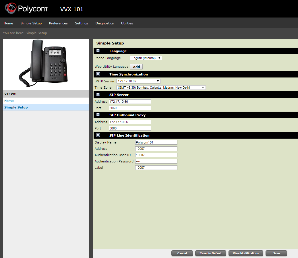 SIP Server Address: Enter the IP address of the Session Internet Protocol (SIP) server. By default, this is the Notification server IP address. Port: Enter the port number for SIP. The default is 5060. If configuring the phone for TLS certificates, the default port will be 5061.
