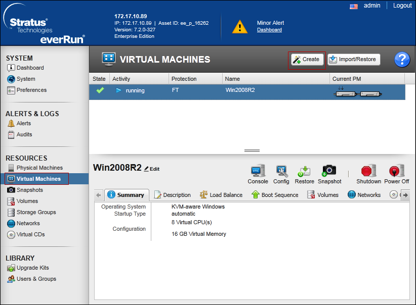 See The Virtual Machines Page section of the everRun’s User’s Guide.