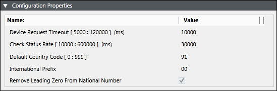 Enter theConfiguration Properties parameters as detailed in Configuration Properties for SMS Gateway Device.
