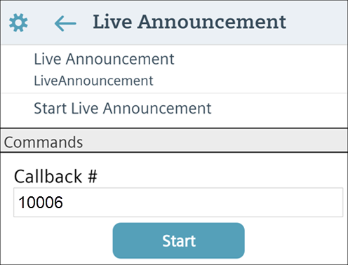 To send the live announcement, depending on the configuration of the live announcement template, enter the callback number in the Callback # field, do the following: