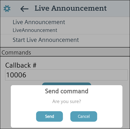 Click Send to confirm the Live Announcement.