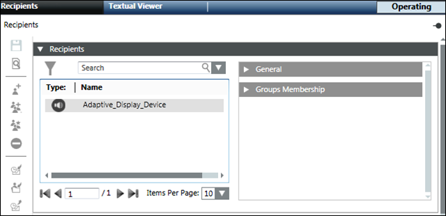 When selecting a recipient device in the Recipients expander, the details of the corresponding recipient device display as follows: