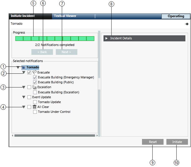 5 | Progress | Displays the progress of the initiating incident process. Once all the steps are successfully carried out, the gray strip turns green completely. |