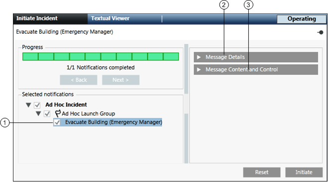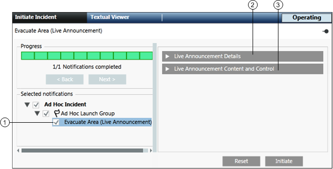 1 | Selected notifications | Displays the incident, the associated launch group, and the associated notifications (message templates and live announcement templates). |