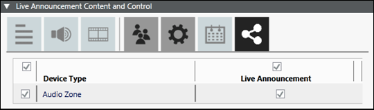 - Live Announcement: Displays the live announcement capability of the corresponding device. A check box is displayed for a device in this column if the corresponding device is capable of processing live announcements.