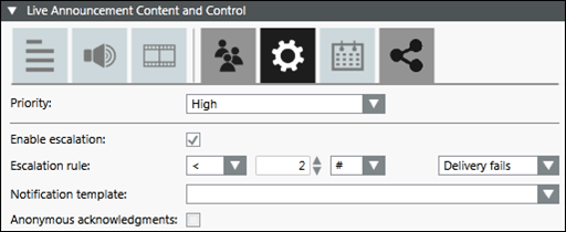 - Priority: Defines the priority of the live announcement template when launched. There are five priority categories: Low, Below Normal, Normal, Above Normal, and High.