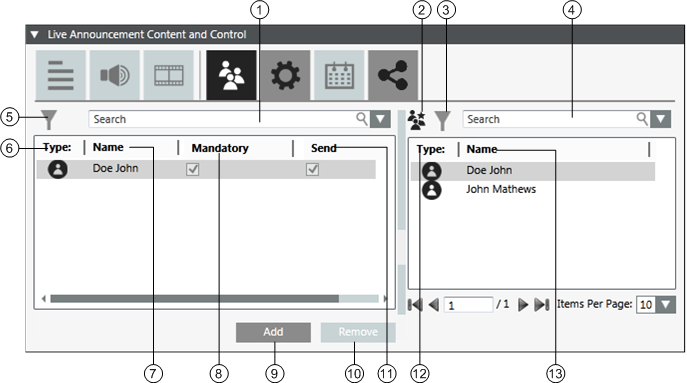 11 | Send | The selected check box represents that the corresponding recipient will receive the live announcement. |