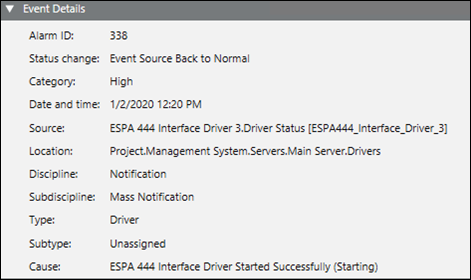 - Category: Displays the event category, for example, Emergency.