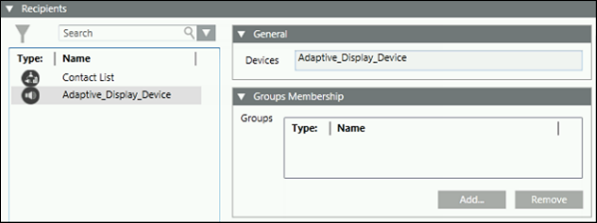 - Groups: Displays the list of groups that the selected recipient device is a member of.