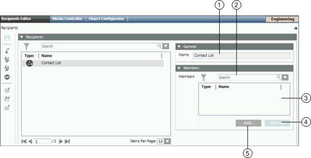3 | Members | Displays the recipients that a part of the contact list with the user type and name information. |