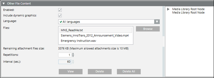 - Repetitions: (Available only for MNS license users) Enter the number of repetitions the multimedia file is played.