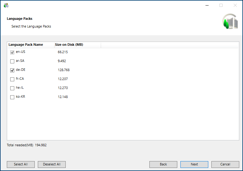 NOTE: Make sure you install only required language packs and extensions, as it adds to the total disk space. All required language packs must be installed before you create a customer project. (See Language Packs and the List of Supported Languages)