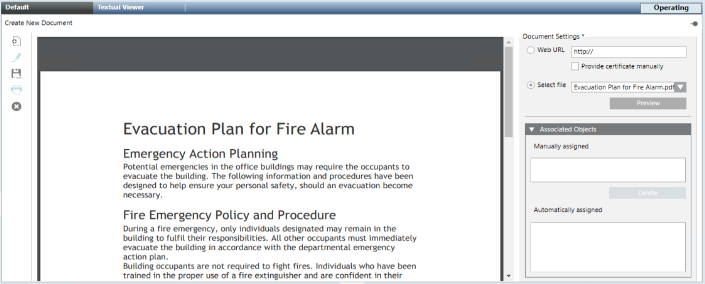 The new document object is available under the selected subfolder in System Browser. Depending on the document type, the read-only content or a web page displays in the Documents workspace.