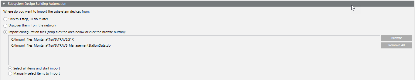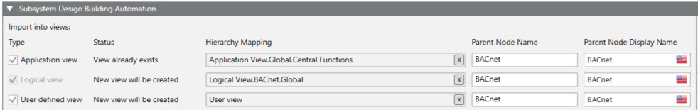 NOTE: If Delete unselected items from the views is selected, all automation stations and linked objects are deleted that are not in the selected import file. The main nodes must be manually deleted in Views for Logical View and User View.