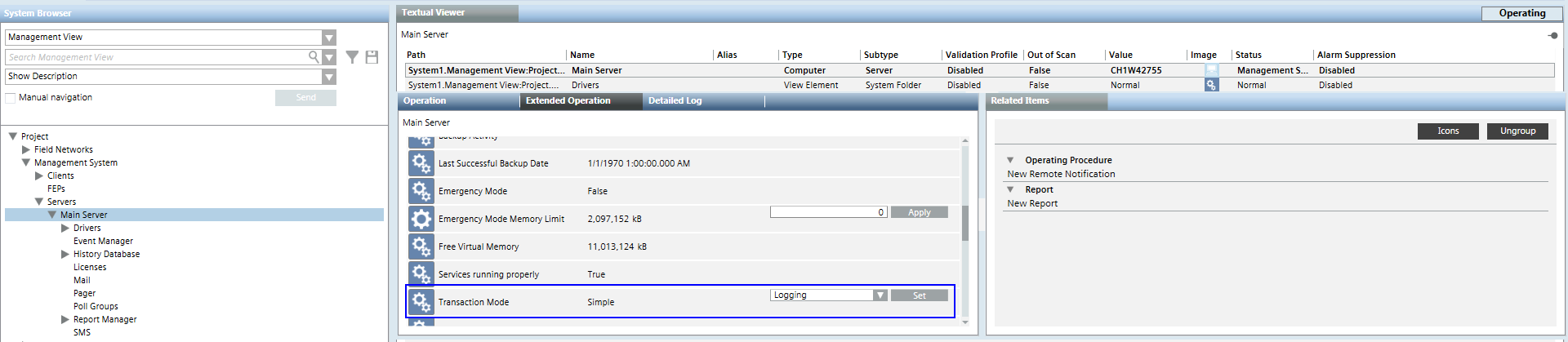 NOTE: The Simple option reduces import time, since not all import transactions are written to the project log database. Following engineering, the project must be reset to Logging.