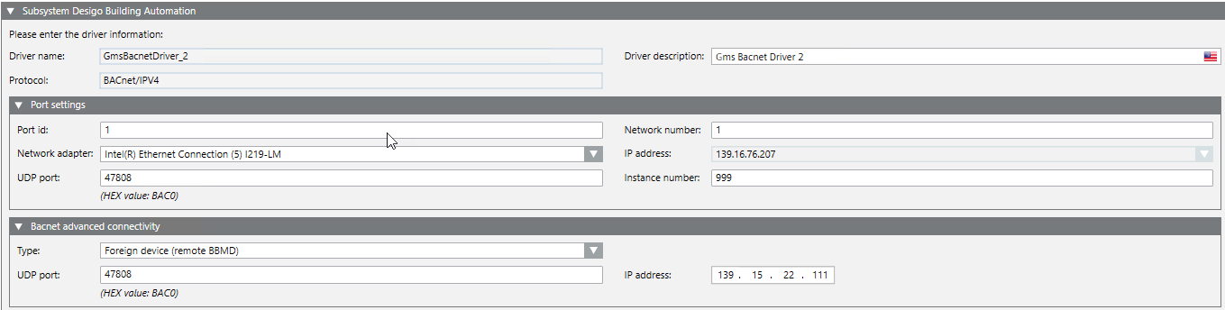 - In the Subsystem Desigo Automation Network expander, enter a name in the Driver description field.
